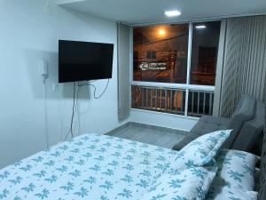 Aparta estudio amoblado Medellin, San joaquin is a private apartment located in the Laureles - Estadio district of Medellín, near Plaza de Toros La Macarena. It offers a terrace and paid airport shuttle service, with Olaya Herrera Airport just 3 km away.