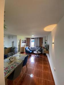 L’appartamento è caratterizzato da una cucina completamente attrezzata con forno, microonde, piano cottura, frigorifero e bollitore elettrico. Gli ospiti possono usufruire della lavatrice o rilassarsi nell’area living dove è disponibile una TV a schermo piatto. La zona notte comprende due letti con biancheria fornita, un armadio per riporre gli effetti personali e un ventilatore per la ventilazione.