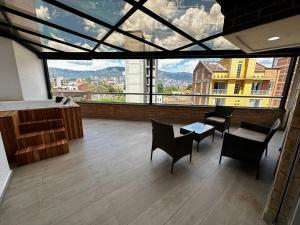 Apartamento con jacuzzi Medellín is an apartment in Medellín offering city views and a hot tub, located approximately 6 km from El Poblado Park. It features free private parking, free WiFi, and access to a terrace and balcony.