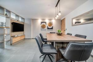 Każdy apartament składa się z salonu, jednej lub dwóch oddzielnych sypialni oraz jednej lub dwóch łazienek wyposażonych w prysznic i suszarkę do włosów. W pełni wyposażone kuchnie obejmują płytę grzewczą, lodówkę, mikrofalówkę, naczynia kuchenne oraz ekspres do kawy. Dodatkowo mieszkania posiadają pralki oraz jadalnie, co sprzyja dłuższym pobytom.