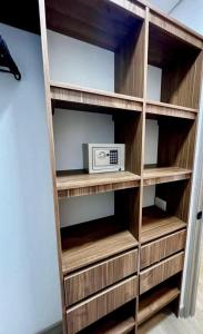 W apartamencie znajduje się jedna sypialnia z dwoma łóżkami oraz w pełni wyposażona kuchnia z lodówką, mikrofalówką, ekspresem do kawy i podstawowym zestawem naczyń. Część wypoczynkowa obejmuje telewizor z płaskim ekranem oraz bezpłatny dostęp do Wi-Fi na terenie całego mieszkania. Do dyspozycji gości jest prywatna łazienka oraz pralnia wyposażona w pralkę.