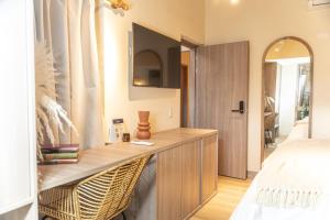 El apartamento dispone de un dormitorio con una cama individual y baño privado equipado con ducha y secador de pelo. La cocina pequeña incluye una placa para cocinar, refrigerador, microondas, utensilios de cocina, así como cafetera y tetera, mientras que la zona de estar cuenta con televisión de pantalla plana. Entre los servicios adicionales se encuentran lavadora, armario o clóset, caja fuerte, escritorio, hervidor eléctrico y almohadas sin plumas.