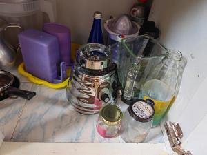 - Small kitchen area