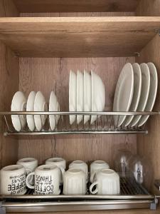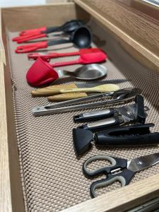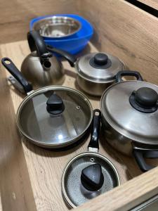 Inside, the apartment features a fully equipped kitchen that includes a stovetop, microwave, refrigerator, and kitchenware. The living area has a flat-screen TV with streaming services alongside free Wi-Fi throughout the unit. A work desk complements the space for productivity needs while storage options include a wardrobe and clothes rack.
