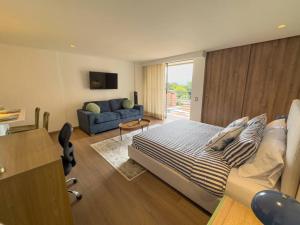 LOFT de lujo en el Poblado ist ein Apartment mit einem Schlafzimmer in Medellín, nur 700 Meter vom El Poblado Park entfernt und nahe dem Lleras Park gelegen. Zur Ausstattung gehören ein Balkon sowie kostenfreie private Parkplätze, die Gästen Komfort in dieser lebhaften Gegend bieten.