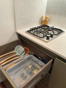 Das Apartment verfügt über eine voll ausgestattete Küche mit Herdplatte, Kühlschrank, Geschirrspüler und Mikrowelle zur Selbstverpflegung. Der Wohnbereich ist mit einem Flachbildfernseher und Sitzgelegenheiten zum Entspannen ausgestattet. Handtücher und Bettwäsche werden bereitgestellt, zudem steht eine Waschmaschine im Apartment zur Verfügung.